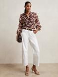 Reiss Jules Abstract Ruffle Shirt, Burgundy/Cream