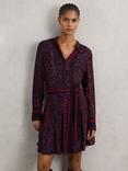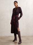 Reiss Daria Snake Print Shirt Dress, Burgundy/Black