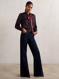 Reiss Dana Snake Print Tie Neck Top, Burgundy