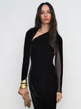 Reiss Petite Kass Sheer Panel Velvet Midi Dress, Black