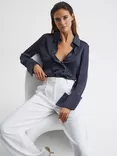 Reiss Lena Silk Short Sleeve Top, Navy