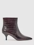 Pippa Leather Kitten Heel Ankle Boots, Burgundy