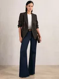 Reiss Ayla Wool Blend Double-Breasted Check Blazer, Brown/Multi