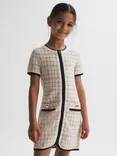 Kids' Mila Cotton Blend Check Mini Dress, Pink/Cream