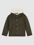 Reiss Kids' Benjamin Wool Blend Overshirt, Dark Sage