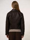 Reiss Lidia Pure Leather Biker Jacket, Chocolate Brown