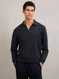 Pearson Buttonless Long Sleeve Polo Shirt, Navy Blue
