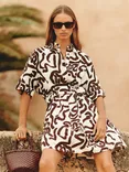 Camelia Linen Blend Printed Shirt Dress, Brown/Multi