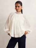 Reiss Czara Ruffle Neck Top, Cream, Cream