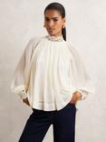 Reiss Czara Ruffle Neck Top, Cream