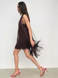 Reiss Farrow Fringe Detail Mini Dress, Burgundy