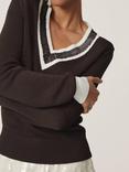 Reiss Courtney Bead Detail V-Neck Knitted Detail, Chocolate Brown