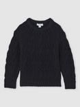 Reiss Kids' Lark Wool Blend Cable Knit Jumper, Navy, Navy