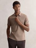 Reiss Lancaster Open-Collar Textured Polo Shirt, Blue/Multi
