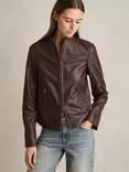 Reiss Drew Pure Leather Jacket, Chocolate Brown