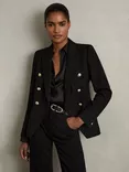 Reiss Lia Double Breasted Wool Blend Blazer, Black