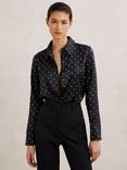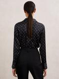 Reiss Lena Silk Short Sleeve Top, Navy