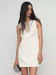Leome Satin Crystal Embellished Mini Dress, Ivory