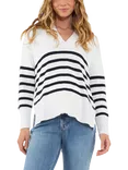 Hanna Stripe Nursing Wool Blend Knit Top, White/Navy