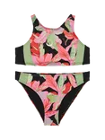 Kids' Active Floral Crop Top Bikini Set, Anthracite