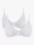 Petite Cotton Non-Wired Bra, Pack of 2, White/Pink