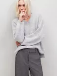 V-Neck Fluffy Knit Jumper, Grey