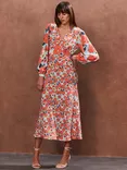 Poppy Ditsy Print Tie Back Tea Dress, Blue
