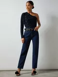 One Shoulder Navy Zebra Top, Navy