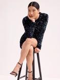 Ro&Zo Darcy Sparkle High Neck Mini Dress, Blue