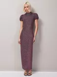 Petite Adeline Sparkle Puff Sleeve Dress, Pink