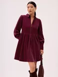 Berry Corduroy Blouson Sleeve Zip Front Dress, Red