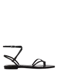 Ellina Leather Flat Strappy Sandals, Black