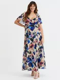 Kemi Floral Wrap Bodice Maxi Dress, Vintage Blue/Multi
