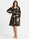 Floral Cowl Neck Fit & Flare Dress, Black/Cream