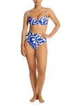 Seascape Panelled High Waist Bikini Bottoms, Cobalt/White