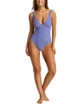 Solara Scoop Back Panel Line Swimsuit, Blue/Multi