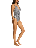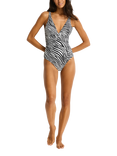 Zebralis Scoop Back Panel Line Swimsuit, Black/White