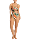 Tropaluxe Twist Bandeau Swimsuit, Khaki/Multi