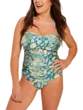 Zambia Long Length Bandeau Swimsuit, Turquoise/Multi