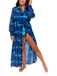 Nile Printed Beach Maxi Shirt, Navy