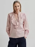 Becka Frill V-Neck Striped Cotton Shirt, Pink