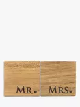 Mr & Mrs Square Oak Coasters, Set of 2, Natural