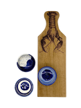 Artisan Stoneware Dip Bowls & Oak Wood Serving Board, 53cm, Blue/Natural
