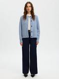 Round Neck Knit Cardigan with Wool & Alpaca, Cashmere Blue