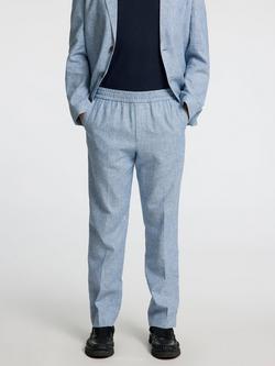 Malik Tailored Fit Linen Suit Trousers, Light Blue
