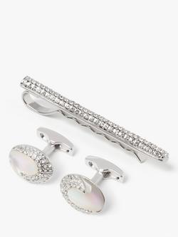 Crystal Tie Slide and Oval Mother of Pearl Cufflink Set