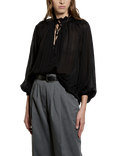 SISLEY Pleated Tie Neck Top, Black