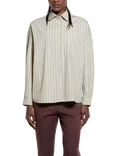 Stripe Cotton Oversized Fit Shirt, Green