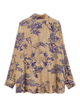 SISLEY Floral Oversized Satin Shirt, Taupe