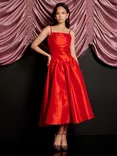 Quart Taffeta Midi Dress, Red